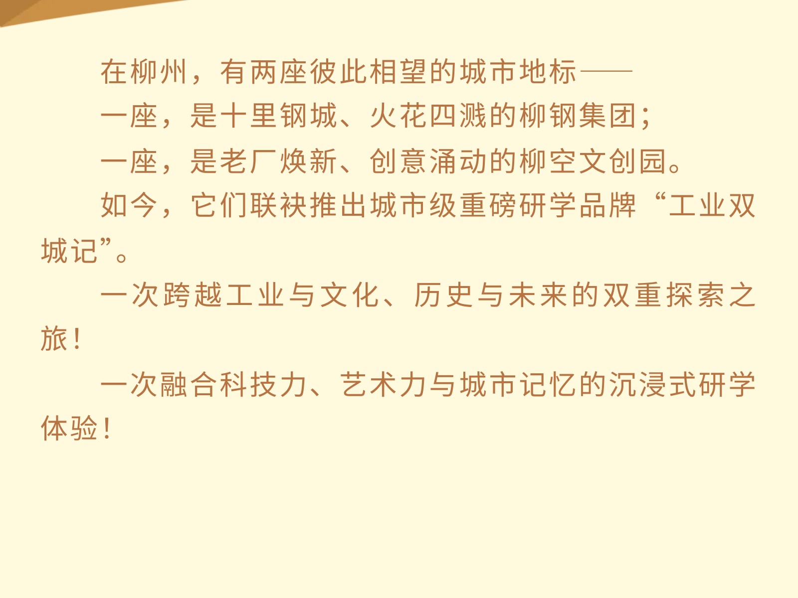 柳鋼+柳空|“工業(yè)雙城記”聯(lián)合研學品牌震撼上線! 發(fā)布時間:2025年04月25日 16時來源:本站原創(chuàng)瀏覽:118 人次