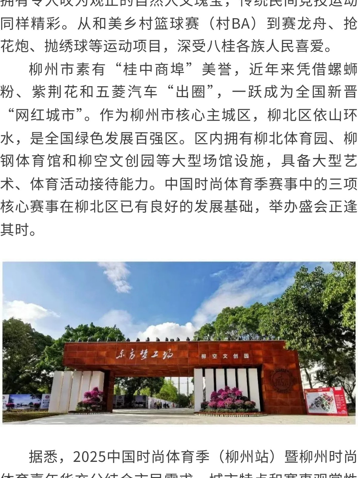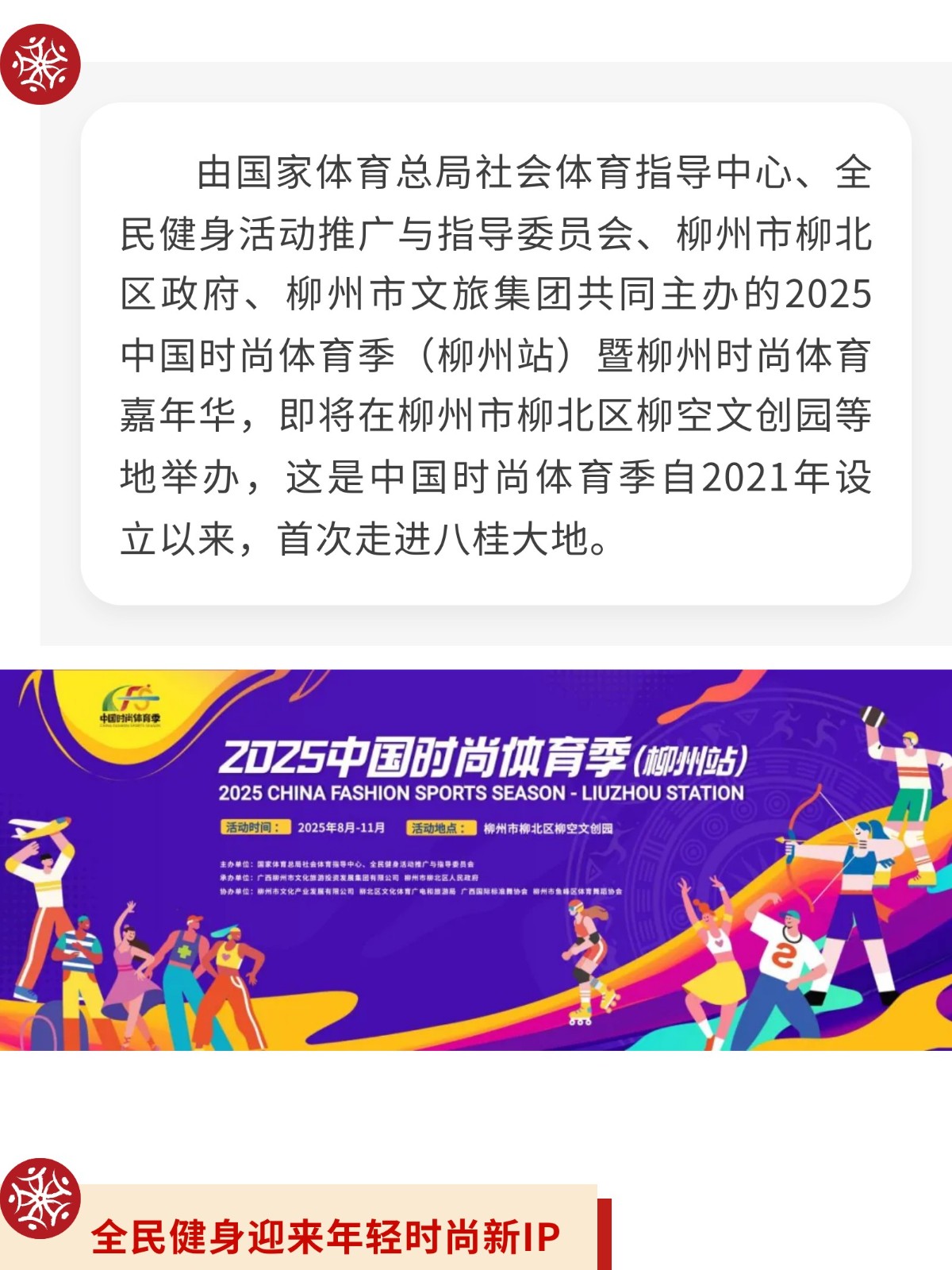 中國時尚體育季“首秀”廣西,定在柳州! 發(fā)布時間:2025年07月30日 10時來源:本站原創(chuàng)瀏覽:117 人次