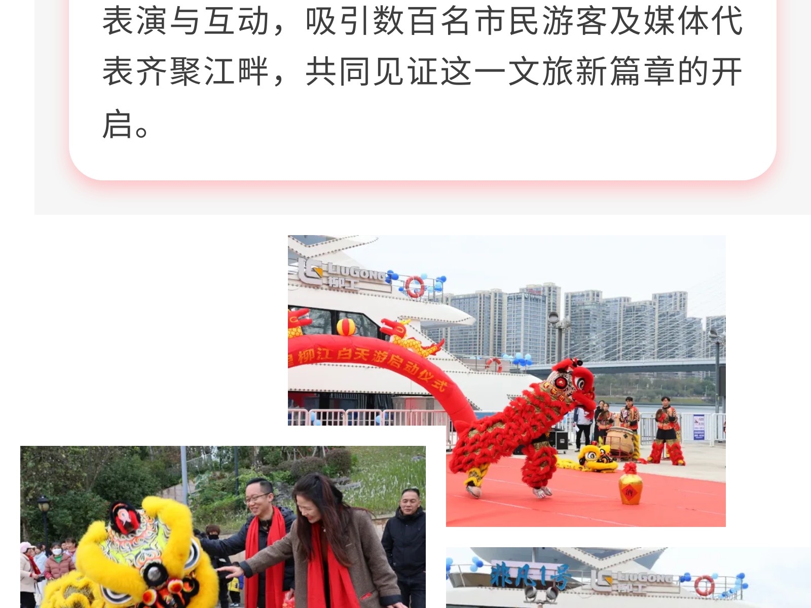 揚(yáng)帆啟新程!百?柳江?天游正式啟動(dòng),雙獅迎賓、禮炮鳴響開(kāi)啟春?盛宴 發(fā)布時(shí)間:2025年03月09日 15時(shí)來(lái)源:本站原創(chuàng)瀏覽:37 人次